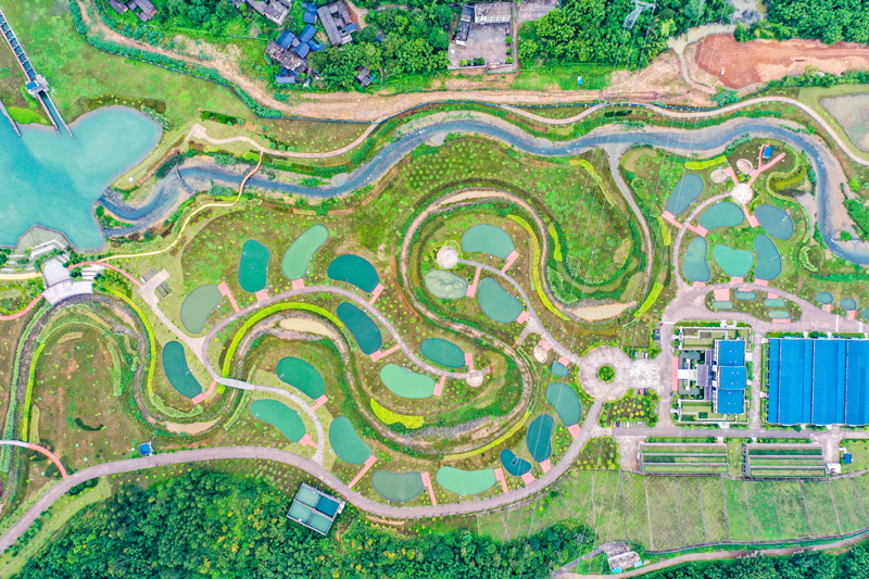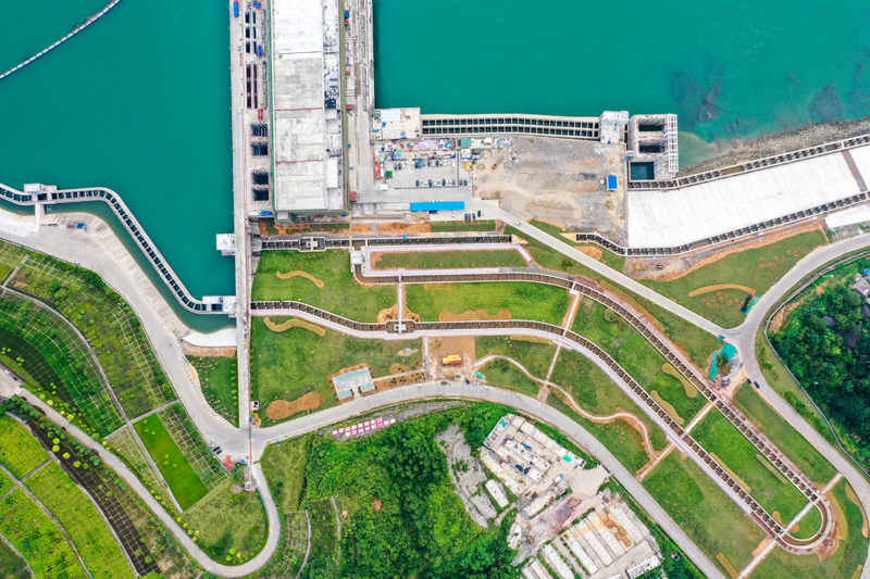 This aerial photo taken on Sept. 2, 2023 shows the fishway and supporting facilities at the auxiliary dam of the Dateng Gorge Water Conservancy project in Guiping City, south China's Guangxi Zhuang Autonomous Region. [Photo/silubaba]
